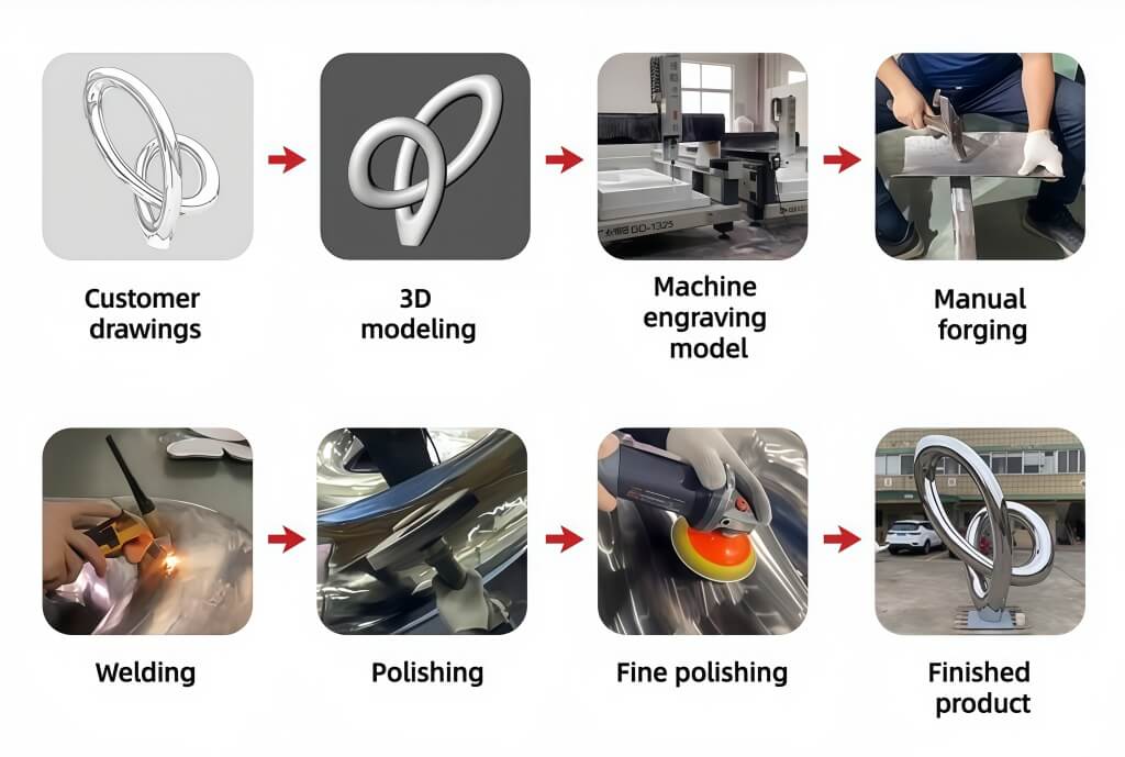 With a 12,000-square-meter workshop in Shenzhen, our team of 5 designers and 87 sculptors brings decades of hands-on experience in a variety of materials, including stainless steel, bronze, weathering steel, iron, fiberglass, and resin.