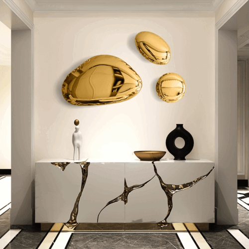 Customized simple and modern stainless steel metal indoor and outdoor pebble creative art wall decoration