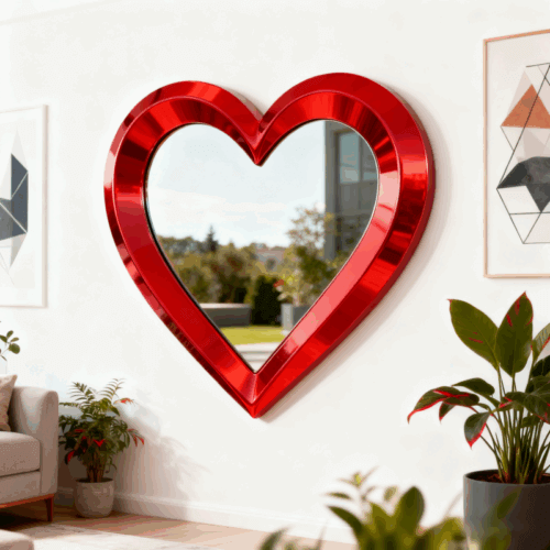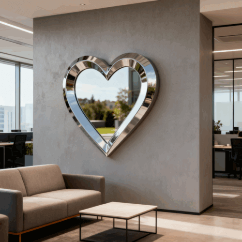 Customized simple and modern stainless steel metal indoor and outdoor heart-shaped mirror creative art wall decoration