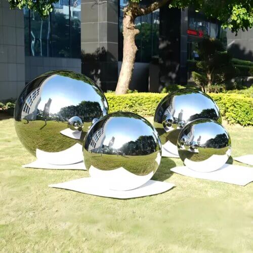 In terms of craftsmanship, it adopts a precise process of “splitting and cutting – seamless welding – water pressure molding – multiple mirror-polishing steps”: first, professional technicians calculate precise data and cut and bend the stainless steel sheet into blade-like shapes, then seamlessly weld them together to form a nearly spherical shape, and then through water pressure technology to precisely shape the ball, ensuring a round and regular surface without obvious joint traces; subsequently, through multiple manual and mechanical combined mirror-polishing processes, the welding joints and surface flaws are completely polished off, ultimately presenting a highly transparent mirror effect with a glossiness of over 8K, capable of clearly reflecting the surrounding environment, achieving a “ball reflecting everything” visual experience. Additionally, some products can be personalized with electroplating, painting, etc., presenting colors such as gold, rose gold, and rainbow, further enriching the visual expression.