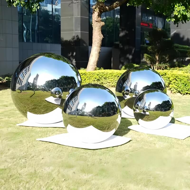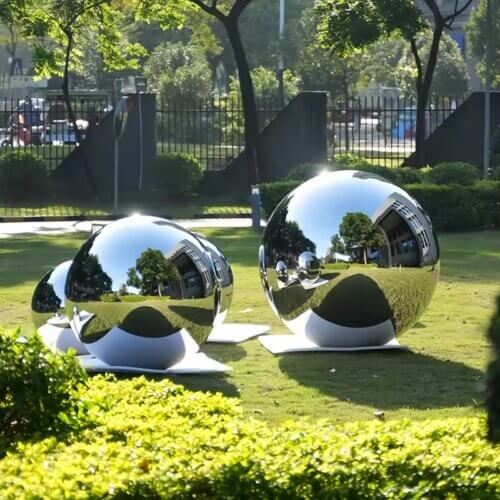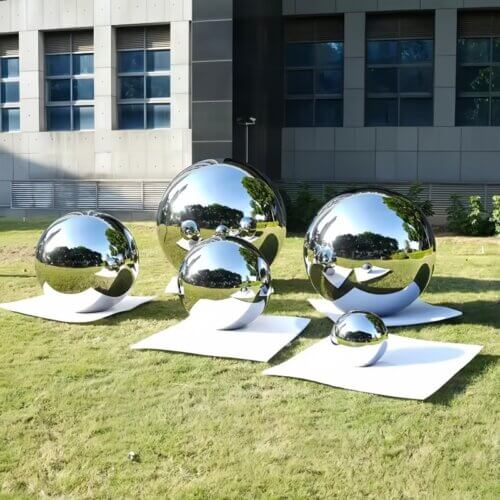 Compared to traditional decorative balls (such as glass, ceramic, and stone), the stainless steel mirror-faced large ball has irreplaceable practical advantages, combining beauty and durability. 1. Super durability: The stainless steel material itself is highly hard and strong, capable of resisting collisions, wear and tear, vandalism, and is unlikely to break. It is suitable for high-traffic public spaces. It also has excellent weather resistance. It can maintain a mirror-like shine even under exposure to sunlight, heavy rain, and extreme cold, and does not fade or oxidize. Its lifespan can reach several decades, achieving “one-time installation, long-term benefit”.