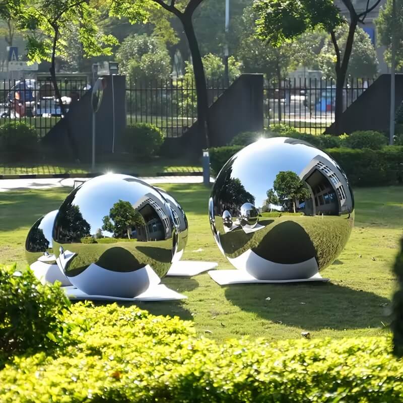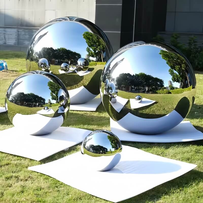 The core charm of the stainless steel mirror-faced large ball lies in its highly impactful visual presentation and diverse aesthetic value. Its smooth mirror-like surface can reflect the surrounding environment without any blind spots, including the sky, green plants, buildings, and human figures, forming a unique “interwoven reality and illusion” landscape, changing with the angle of light and environmental conditions, presenting countless visual effects – during the day, it reflects blue sky, greenery, buildings, and human figures, integrating with the natural landscape; at night, it reflects lights and stars, creating a dreamy and lively atmosphere, becoming the visual focus of the space.