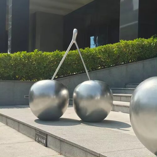 Factory Modern Outdoor Garden Decoration Customized Color Size Metal Crafts Sphere Art Stainless Steel Cherry Sculpture