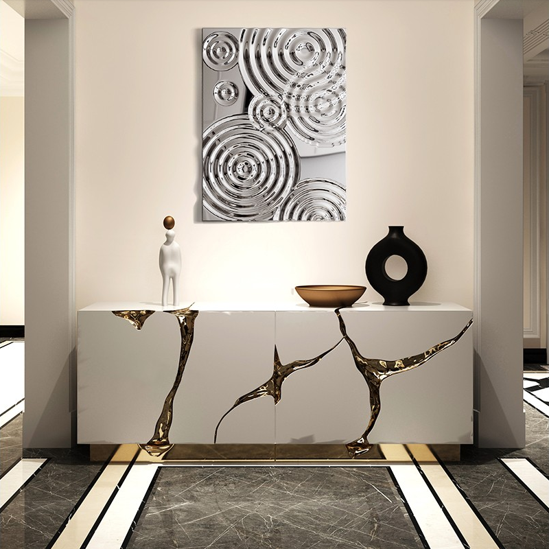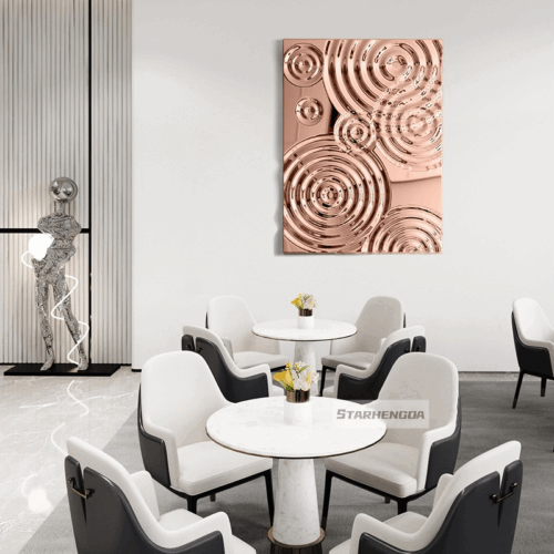In terms of visual expression and space adaptation, these wall decorations have unparalleled advantages. The noble titanium gold luster and the modern metal texture of stainless steel can be perfectly integrated with various interior styles, such as luxury European style, modern minimalist style, industrial style, Nordic style, and Chinese style. In the living room, installing a large-scale 304 stainless steel electroplated titanium gold wall decoration above the sofa can become a striking focal point, enhancing the luxury and elegance of the space; in the bedroom, choosing a delicate and simple design can add a touch of warmth and romance to the sleeping environment; in the dining room, matching with the dining table and chandelier can enhance the sense of ritual of dining; in the entrance hall, a small and exquisite wall decoration can leave a noble and elegant first impression on guests. Beyond residential spaces, these wall decorations are also widely used in commercial spaces, such as hotel lobbies, high-end restaurants, luxury boutiques, art galleries, and corporate reception areas. In hotel lobbies, they can show the hotel’s high-end taste and create a grand and luxurious atmosphere; in high-end restaurants, they can enhance the dining experience and attract customers; in corporate reception areas, they can reflect the company’s strength and taste, leaving a good impression on clients.
